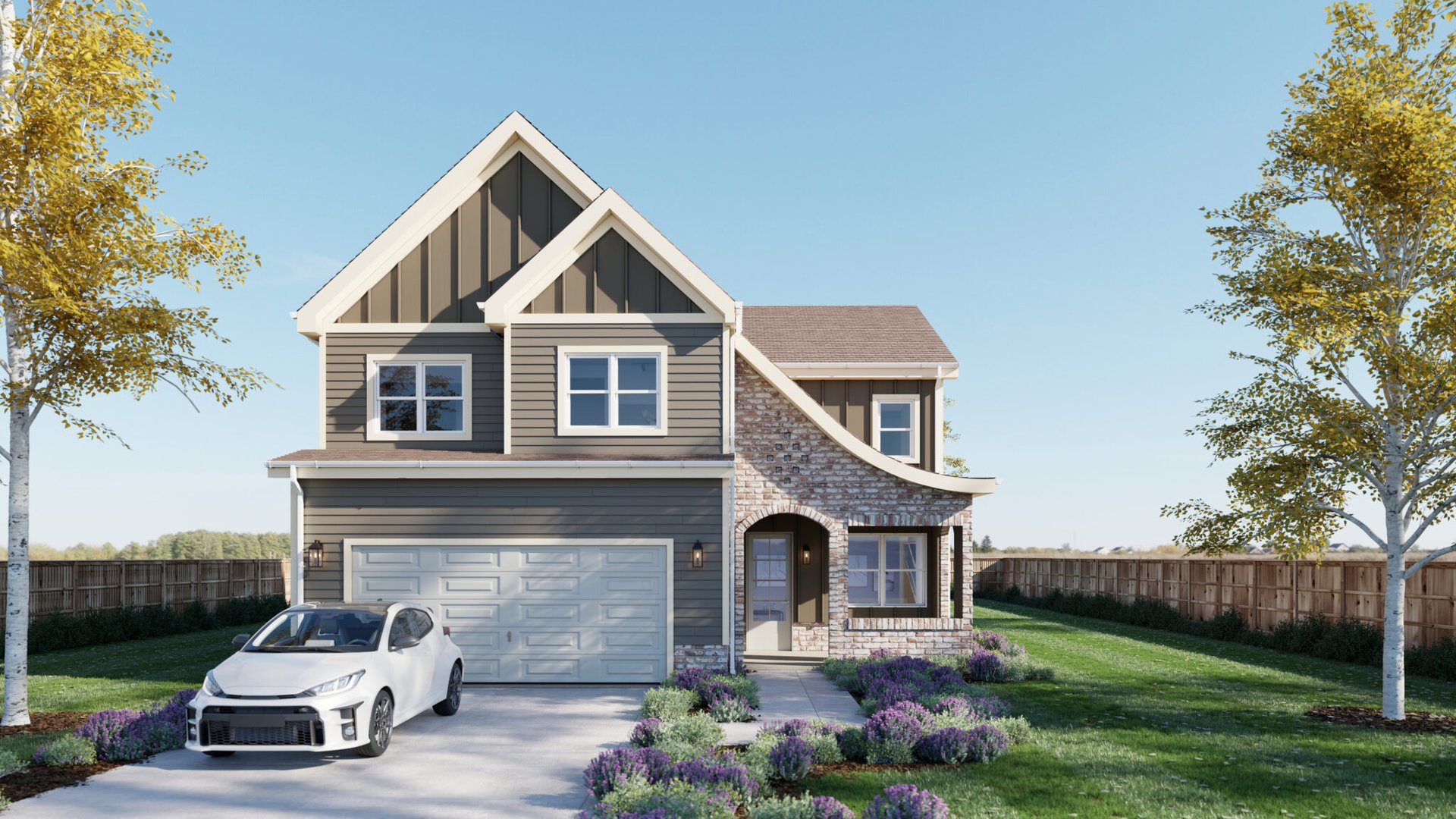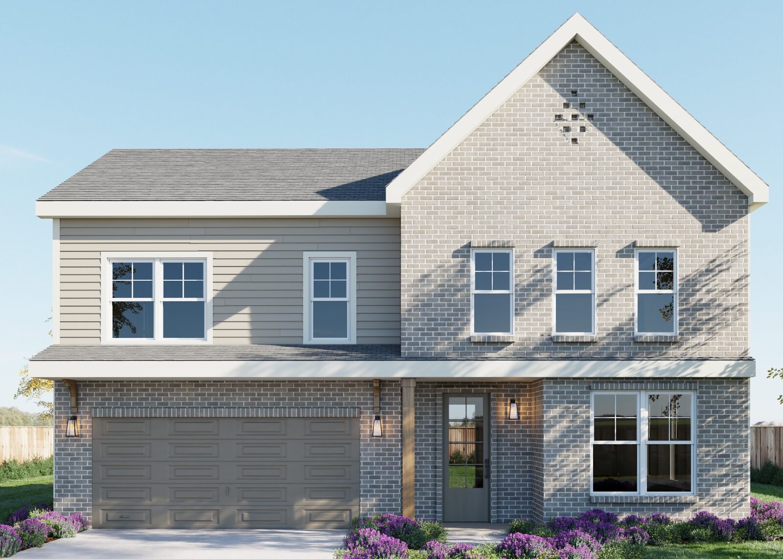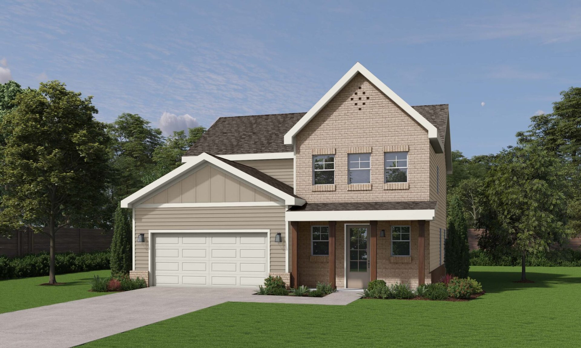 The Barrett Model is available in two elevation styles. With two levels, a two car garage, a 3 Bedroom and 2.5 Bath layout, and 2,032 sq ft, the Barrett Model can be personalized to your taste giving you the freedom to mix and match elements to create a truly unique space.